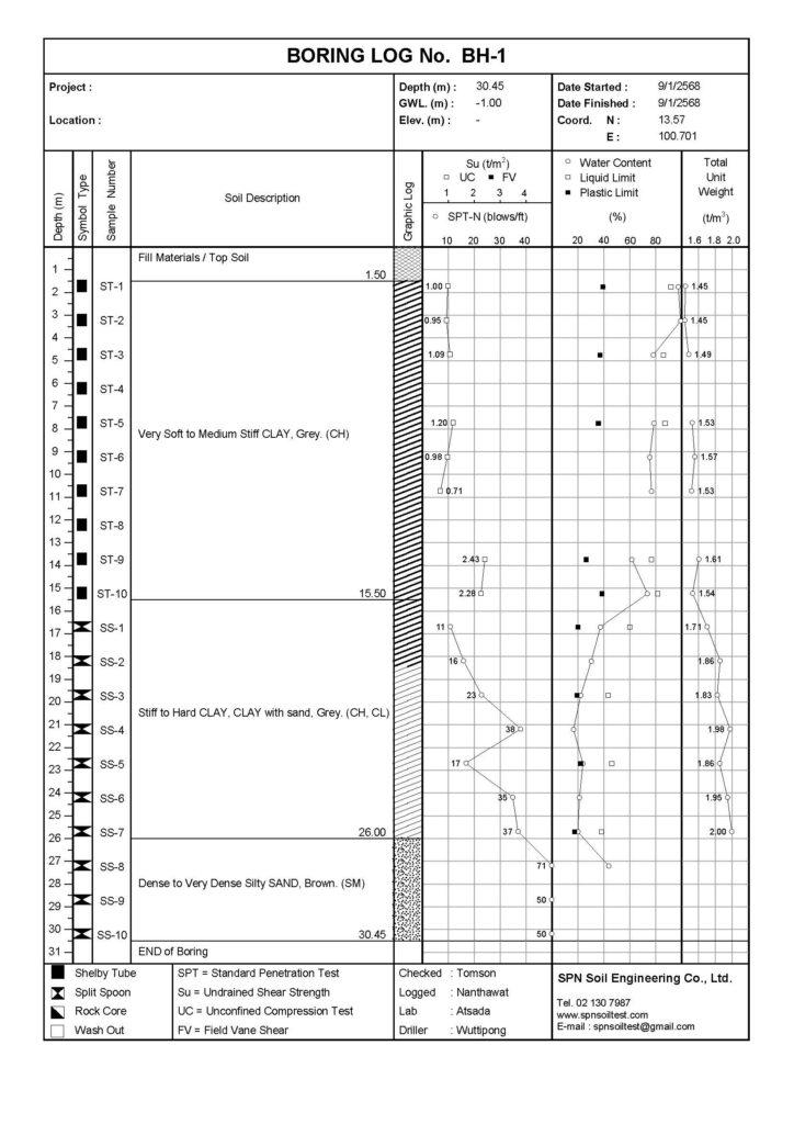 - การทดสอบคุณสมบัติของดิน : เช่น การทดสอบการรับน้ำหนัก การทรุดตัว และการไหลซึม